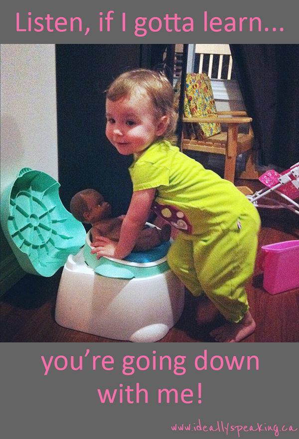 And, since she is now a ‘pro’, she has taken to potty-training all of her babies. Hilarious and adorable.