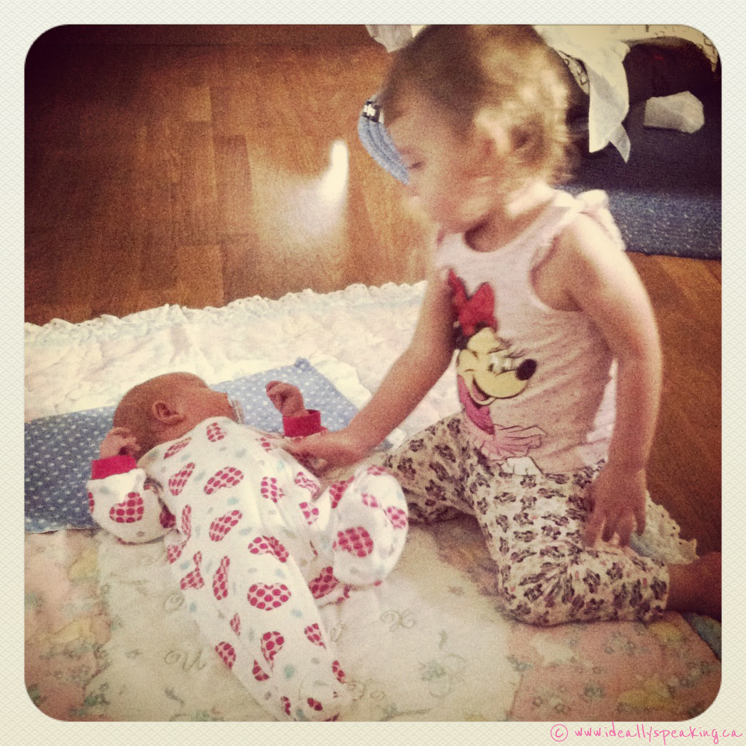 Lilly: What do you mean I can’t pick her up, put her in my doll stroller & feed her?! She’s a ‘baby’ isn’t she? |